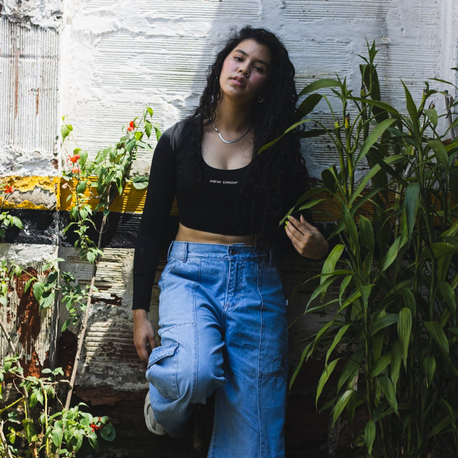 TOP GIRLS off White y negro, mangas largas y estampado plano a tono.