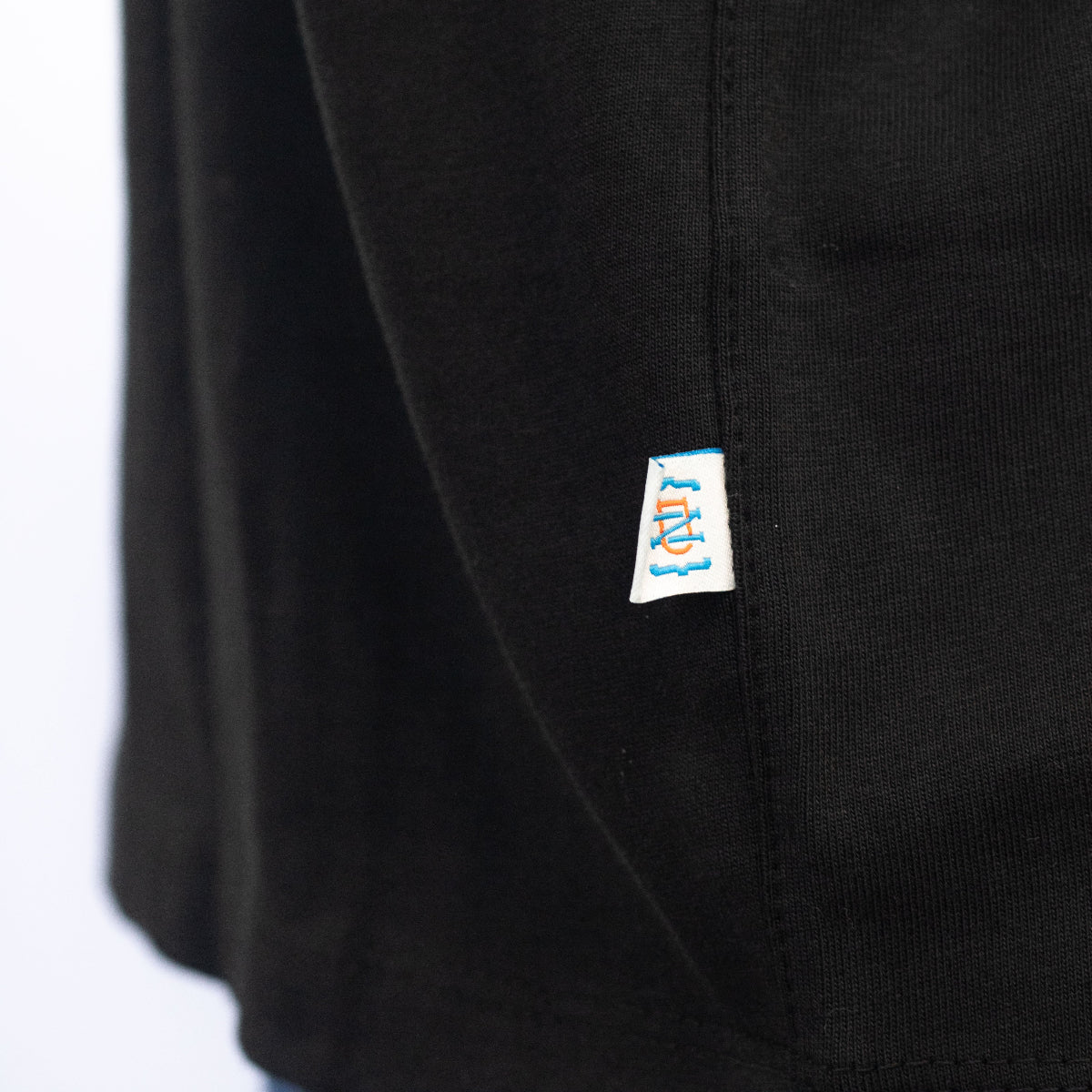 Detalles textiles: bandera de marca tejida, marquilla de talla satinada, instrucciones de lavado, garra de marca tejida.