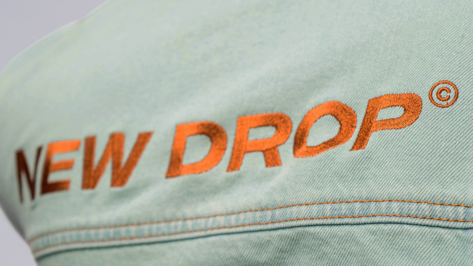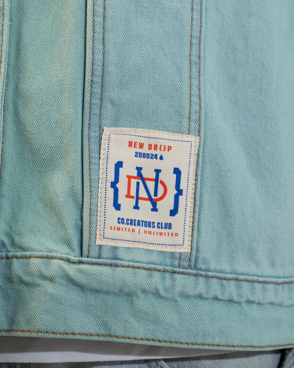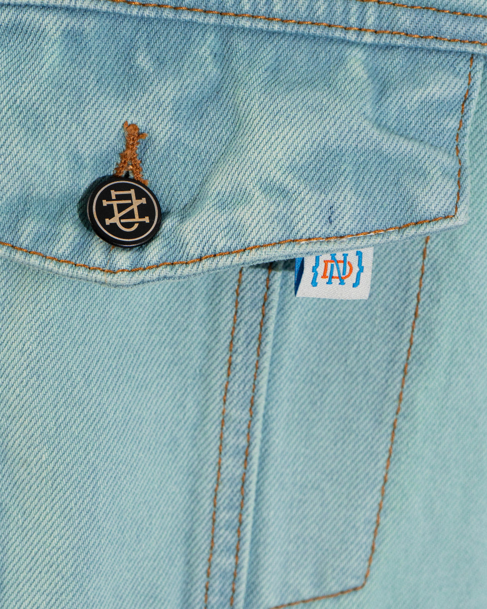 lavado, garra de marca tejida, garra de cuero sintético y botón de golpe contramarcado.